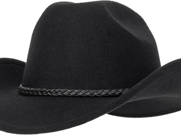 Vintage Western Cowboy Hat for Men Women – Wide Brim Cowgirl Fedora Hats with Braided Rope Band M