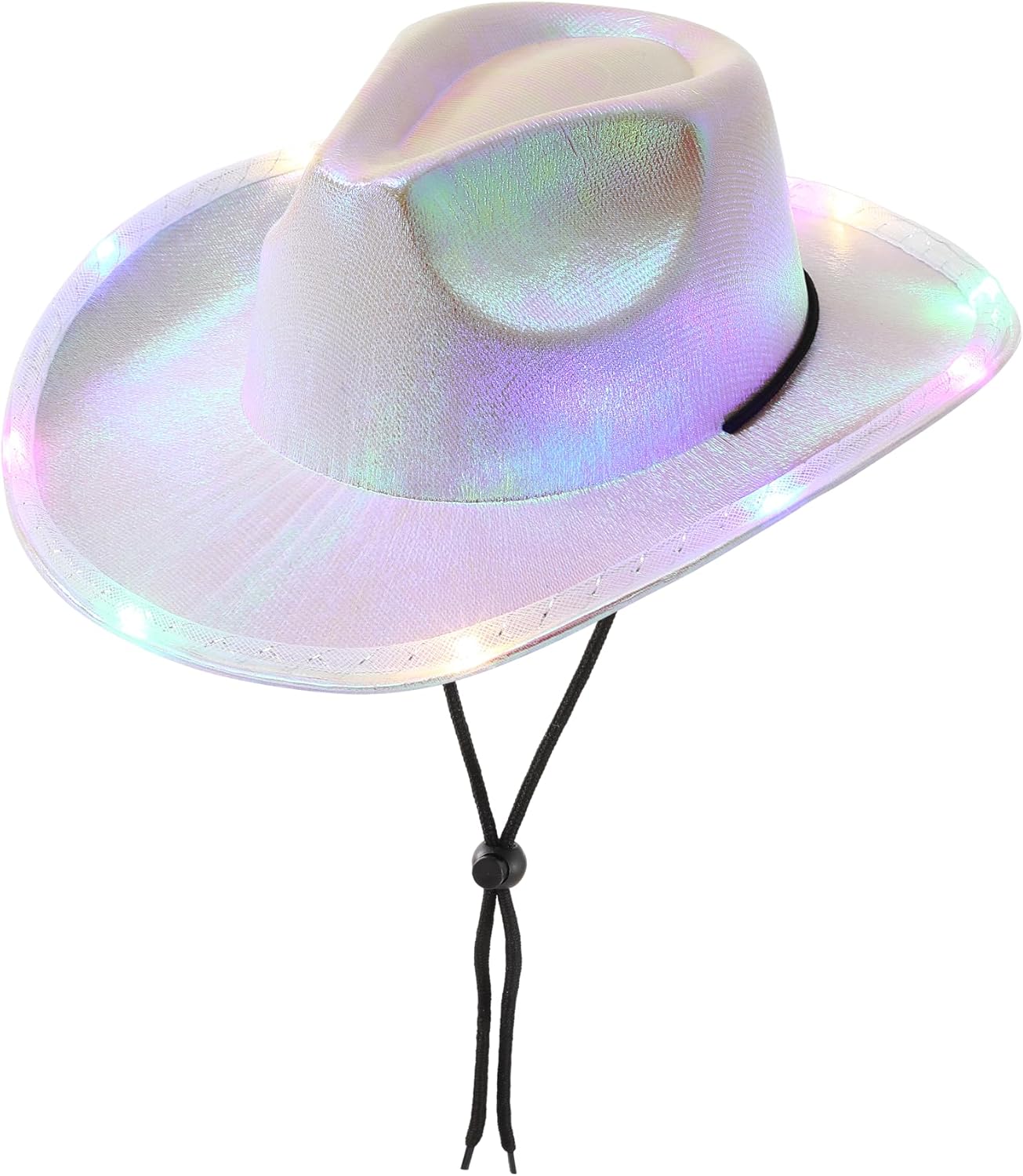 【Disco Cowgirl Hat】: The surface of this LED sparkle cowboy hat is laser crafted, which decorates the Cowgirl Hat, making the cowboy hat women look better. When you are dancing happily, the equipped air vent rope can better fix women’s cowboy hat.