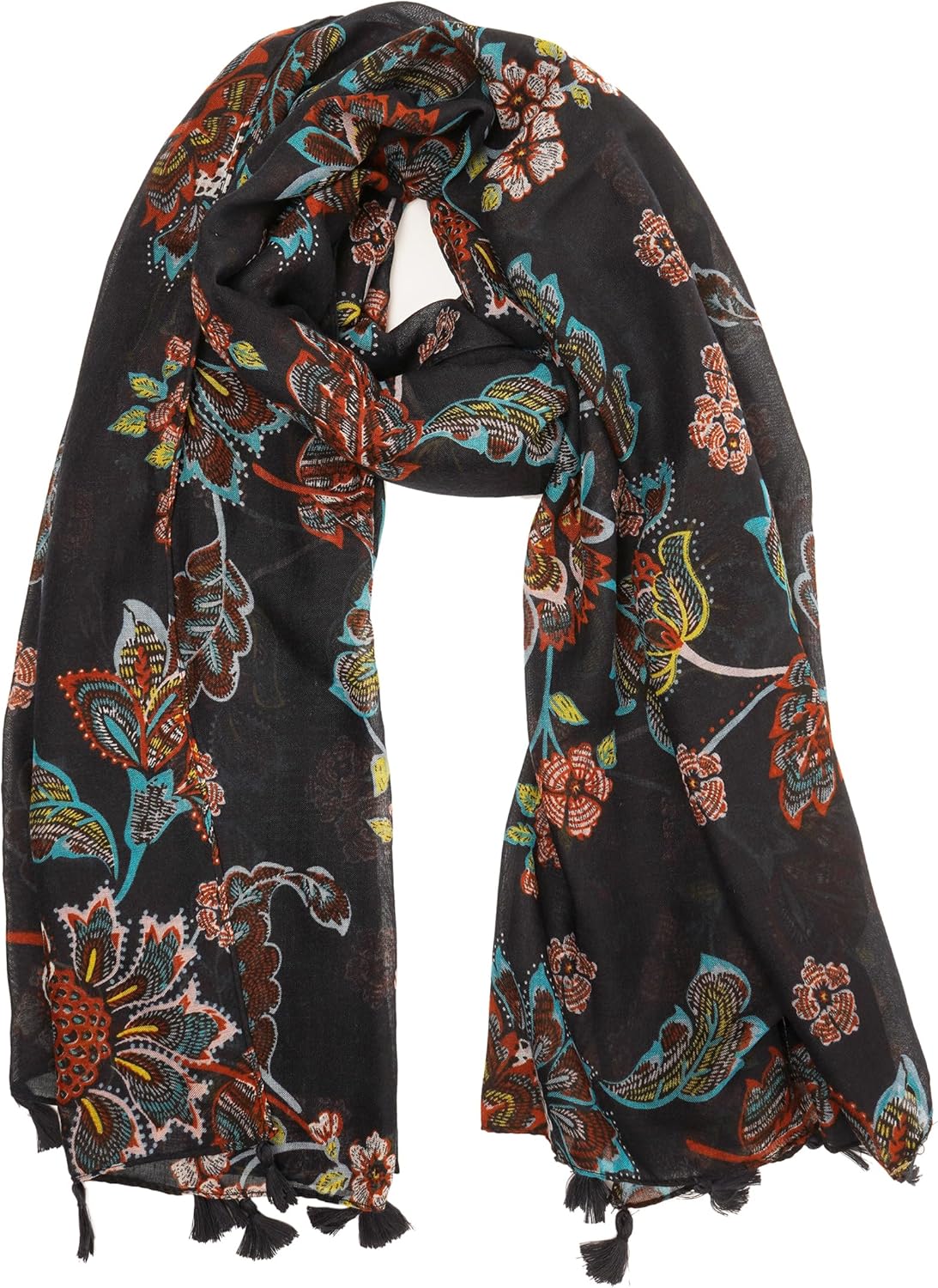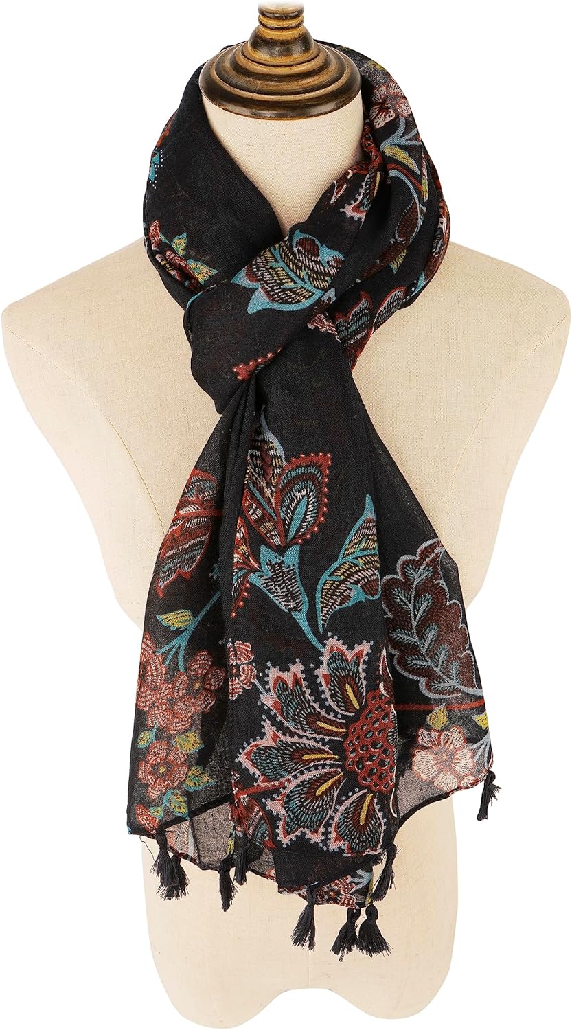 Large Boho Scarf for Women Lightweight Floral Printed Scarves Fall Winter Fashion Fringed Shawl wraps