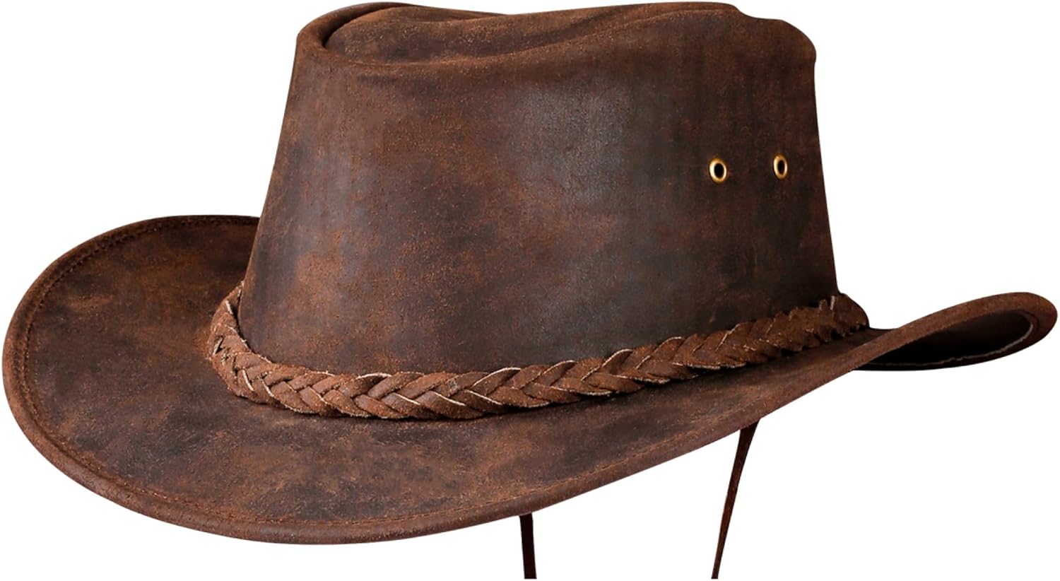 • leather cowboy hats for men are complementary for youth stylish looks and necessary part of cowboy attire for men. These aussie hats for men are associated with farmers, ranchers trucks drivers rugged outdoor and gambler looks. In the recent years these unisex Australian hat for men outback has started to become more common fixture in mainstream fashion and are most commonly searched and called leather hats for women & men both. Sizes available from small to xl cowboy hat xxl cowboy hat