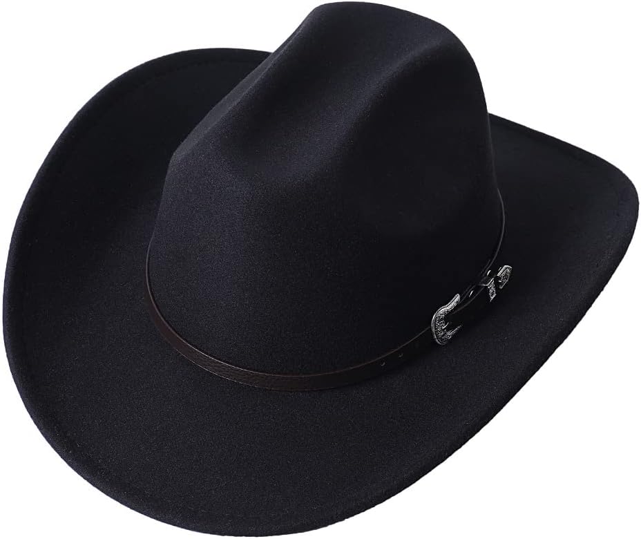 Men Women Wide Brim Western Cowboy Cowgirl Hats with Buckle Belt