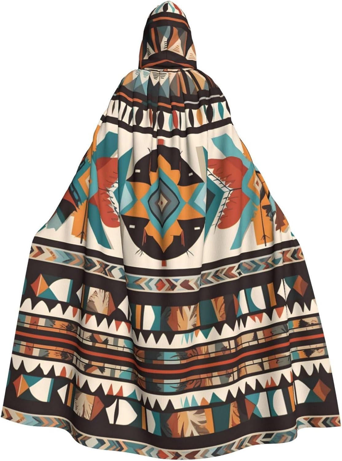Transform into mysterious characters with the Native American Patterns Prints Adult Hooded Cape Cloak, perfect for Halloween, role-playing costumes, and stage costumes.