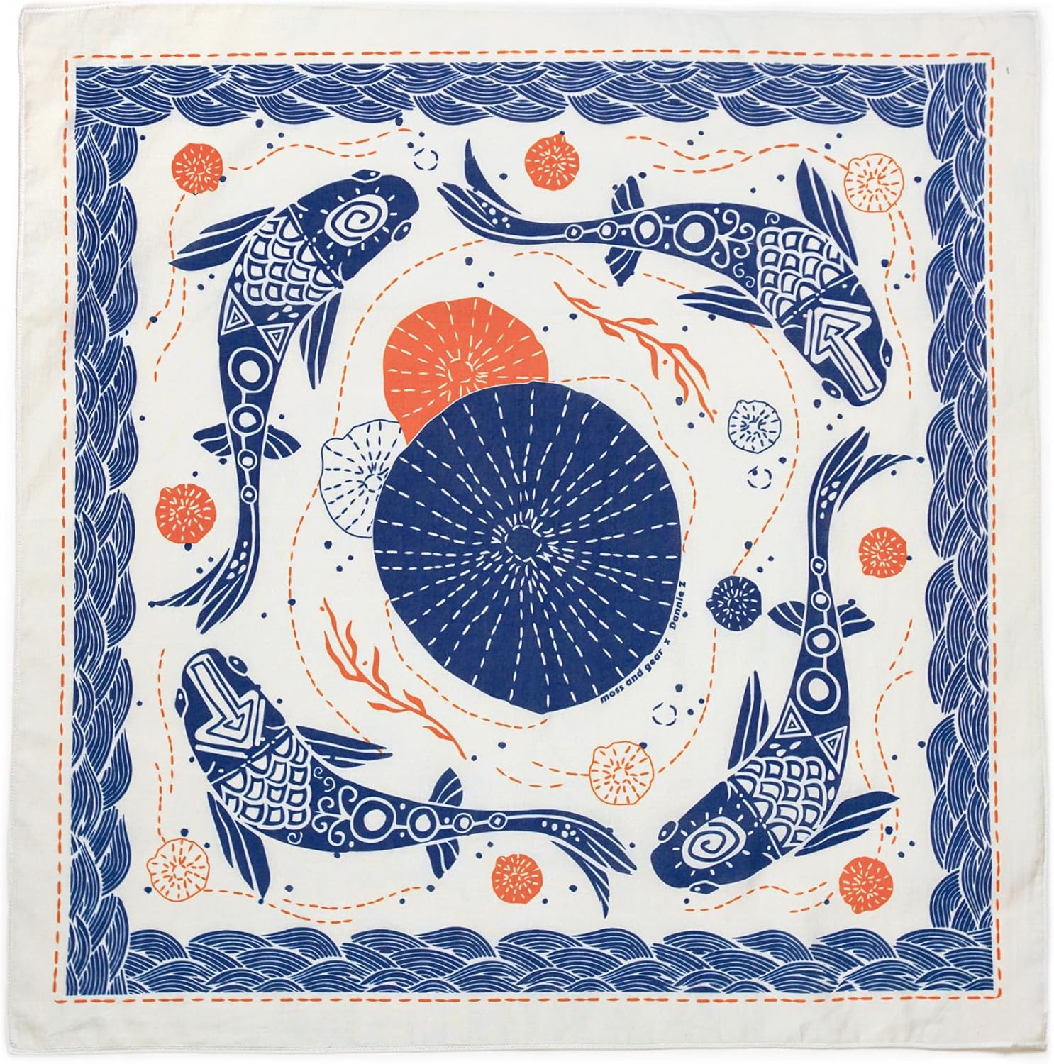 • Classic 22” Handcrafted Square Bandana – Detailed with a traditional Koi fish design, made from premium cotton for comfort and style