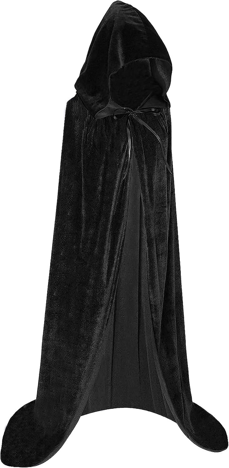 • Adult Halloween Cape: This hooded velvet cape is a truly epic halloween cape, with lots of velvet bits, a metal neckline, a big drag and a cowl, making it a stylish and classic Halloween cape costume. This hooded adult cloak is suitable for any Gothic style, usually for both men and women