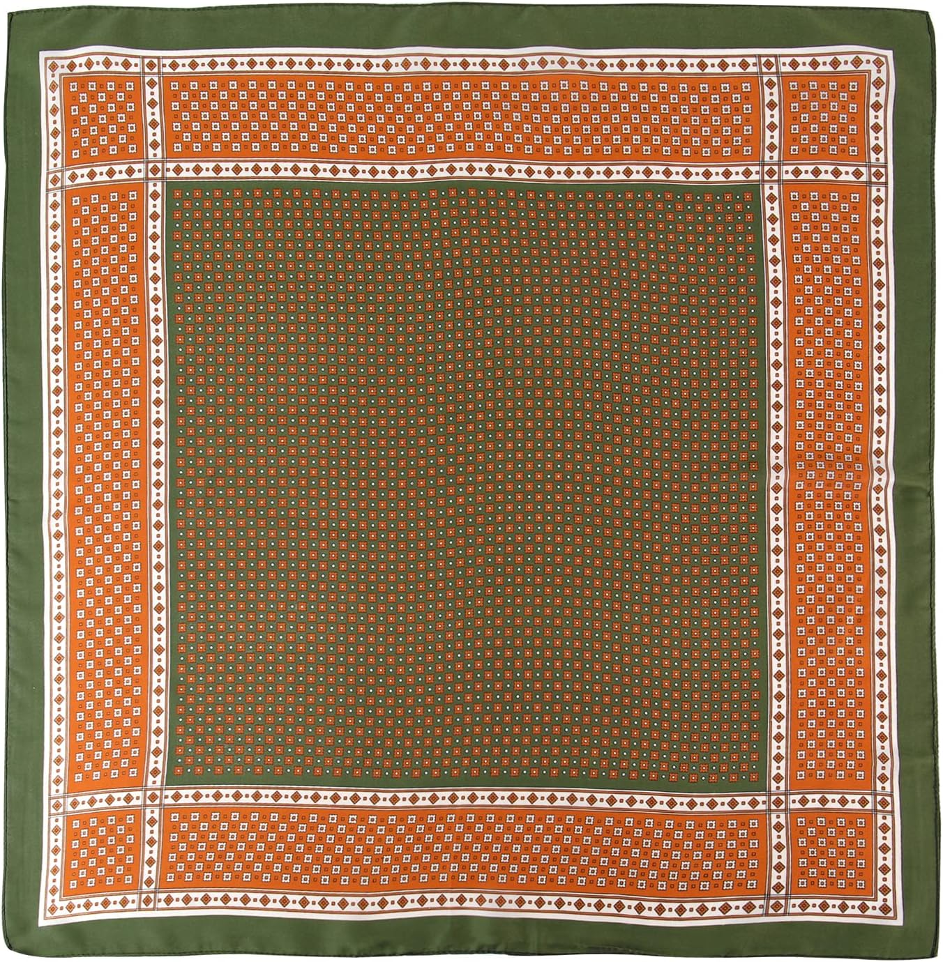 Dimension of silk square scarf is 27.5*27.5 inches(70×70cm), large to be worn as Rakish cowboy scarf. Fashion and stylish ascot tie. Day cravat look is a simple way to look suave and put together with no-fuss. Care-free and casual Necktie scarf in daily life. Handsome and gentleman neck roll scarves. Elegant pocket square.
